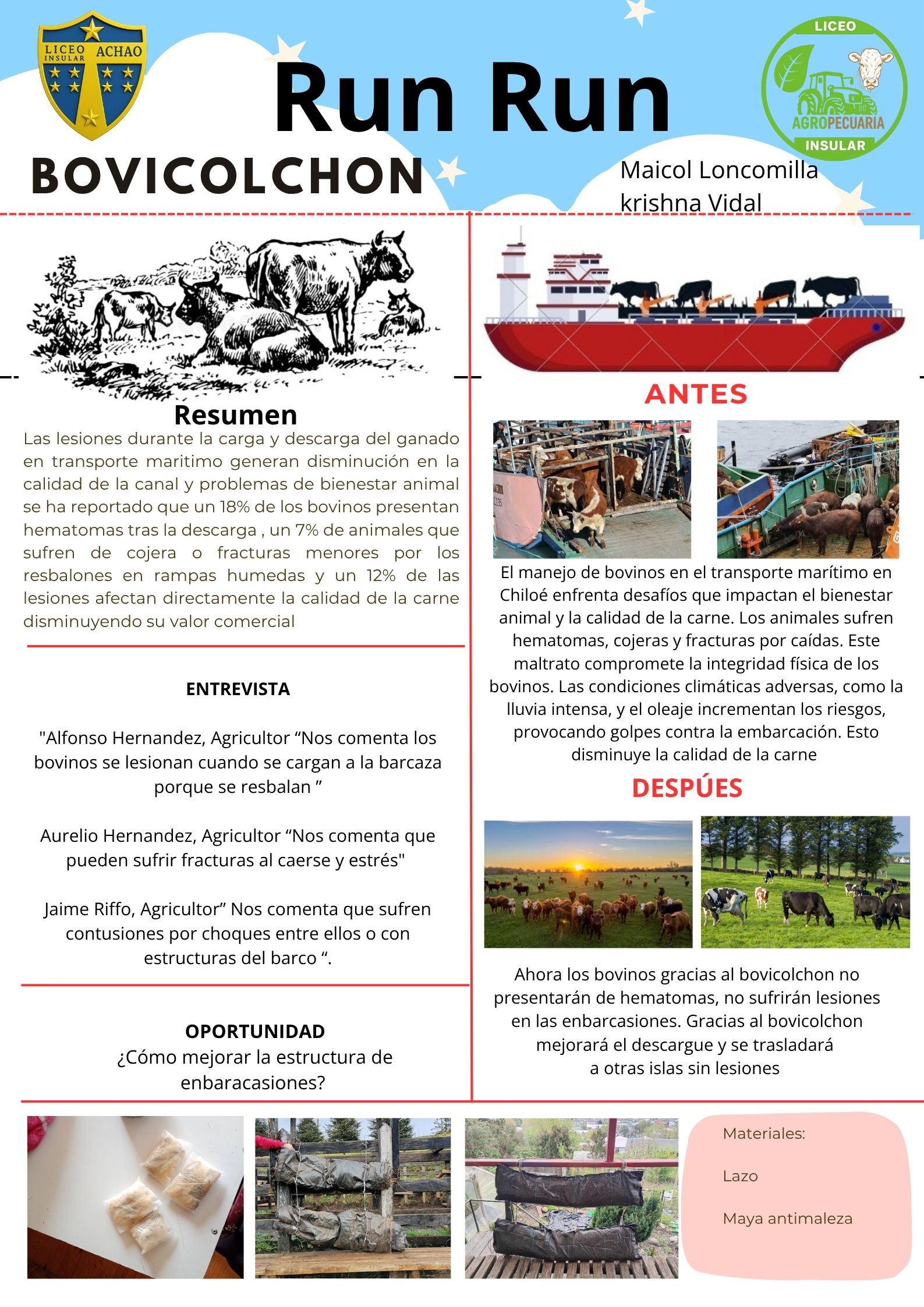 Nuestra idea consiste en la creación de un “colchón” que amortigua los golpes de los bovinos durante su transporte marítimo en Chiloé.