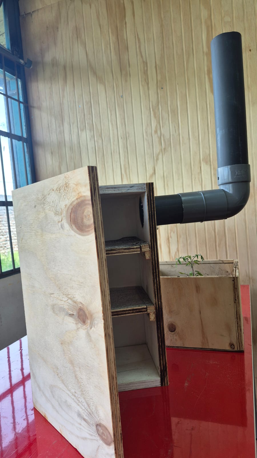 El diseño fue pensado para ser económico, funcional y sustentable, ya que utiliza madera reutilizada, mallas recicladas y tubos fáciles de conseguir sin la necesidad de electricidad o artefactos caros, lo más valioso es que cualquier persona puede construirlo con herramientas simples, lo que hace factible de implementar en zonas urbanas y rurales.