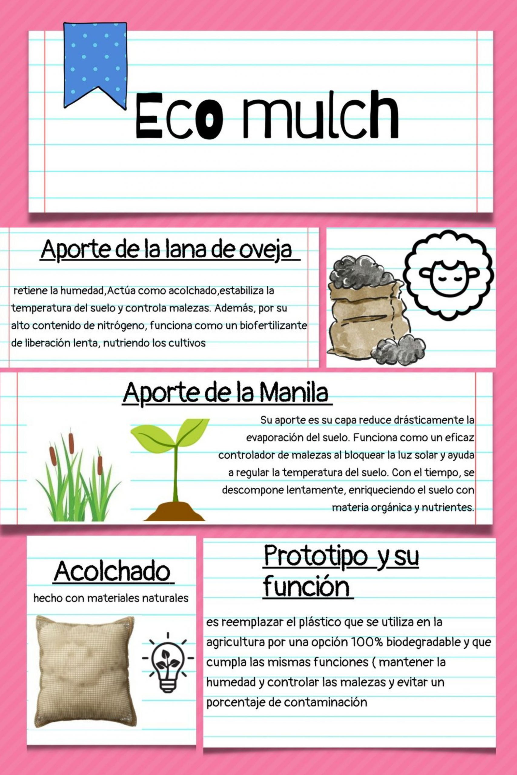 Cambiar el plástico de mulch por una opción $100\%$ biodegradable (Lana y manila en forma de cuadro $30 \times 30$) y así disminuir un porcentaje de contaminación.