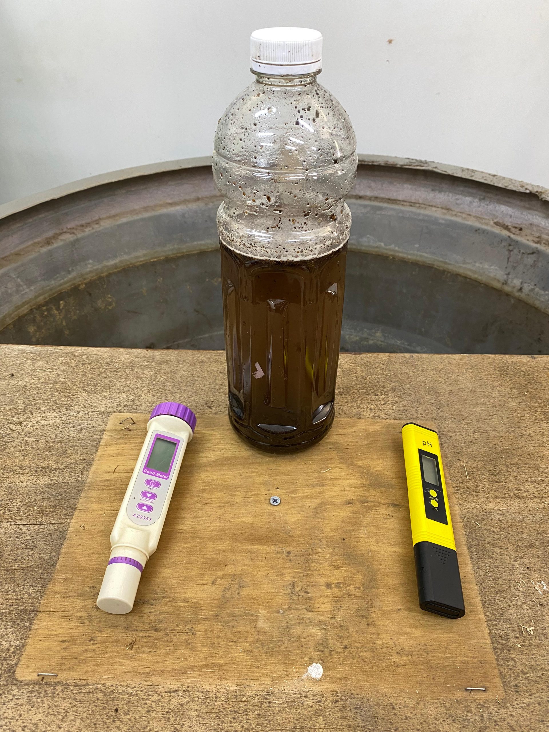 - El primero con fertilizante natural líquido, elaborado a base de guano y estiércol.