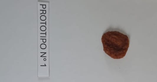 1° Prototipo: Consistía en un formato tipo bocado. Aunque su sabor fue bien evaluado, resultó poco práctico y atractivo visualmente para los estudiantes.