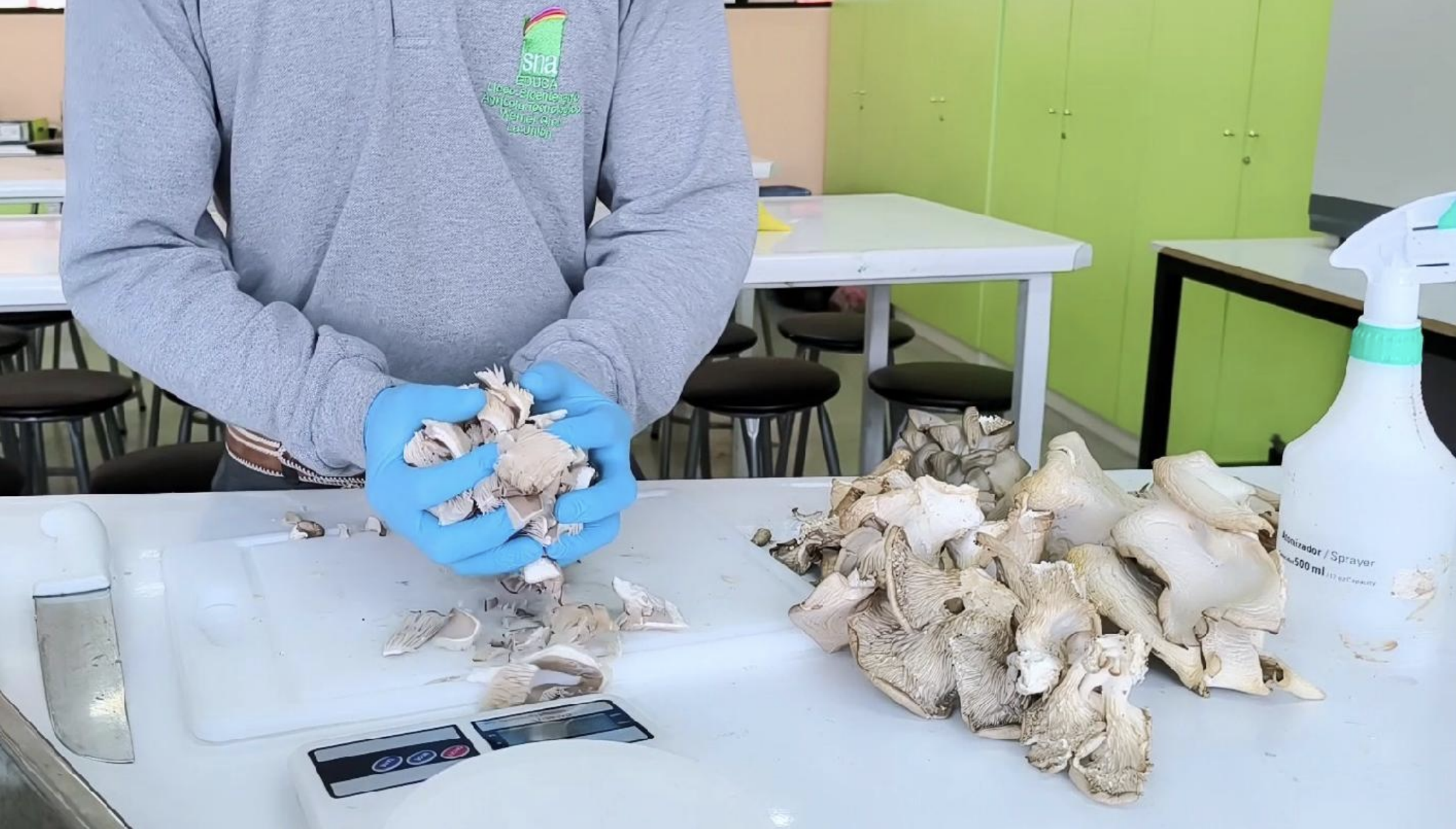 - Recolección: Seleccionar de hongo no comestible y residuo del cultivo, picar en trozos pequeños para facilitar la liberación de compuestos activos.