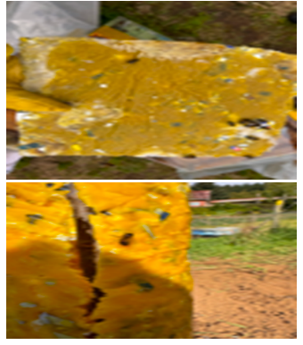 En el caso de los frutales, observamos que los insectos polinizadores se acercaban con naturalidad a la protección elaborada con Lifko, lo que demostró que el material no generaba rechazo ni interfería con su comportamiento. En el testeo en colmenas, al colocar la lámina en los cajones, las abejas se adaptaron de manera óptima, sin mostrar signos de incomodidad ni alteraciones en su actividad habitual, confirmando la compatibilidad del material con el entorno apícola.