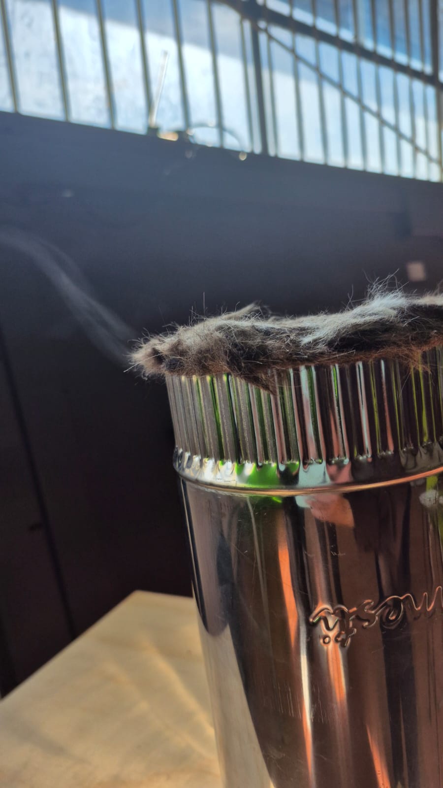 Quisimos probar tres aspectos principales: si el pelo del animal realmente atrapaba el hollín del humo, si resistía bien el calor y si era fácil de limpiar el filtro después de usarlo.